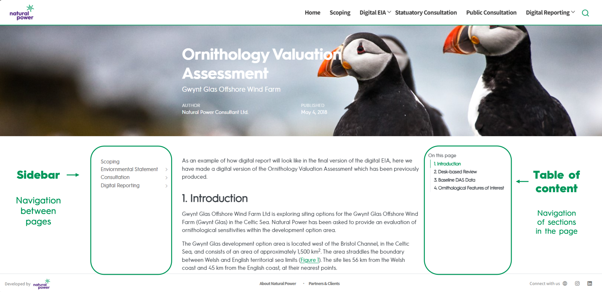 This page provides an overview of the key features of digital reports that ease navigation through large documents. These are split in: